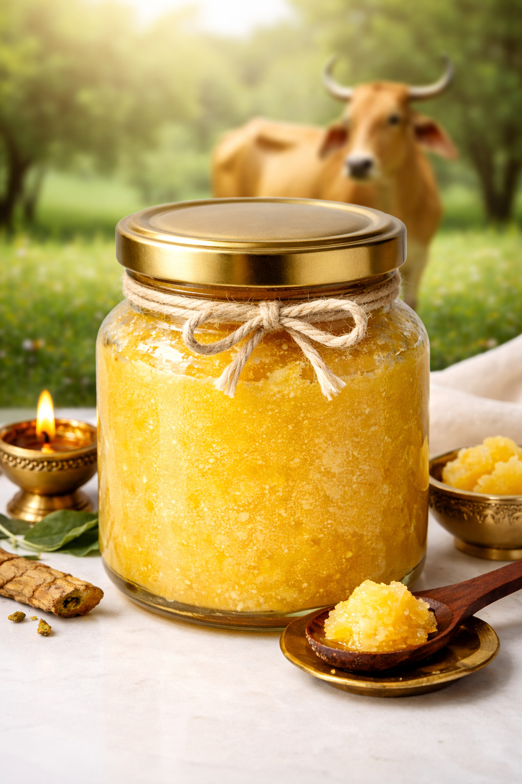 Premium Gir cow ghee sourced from free-grazing cows.